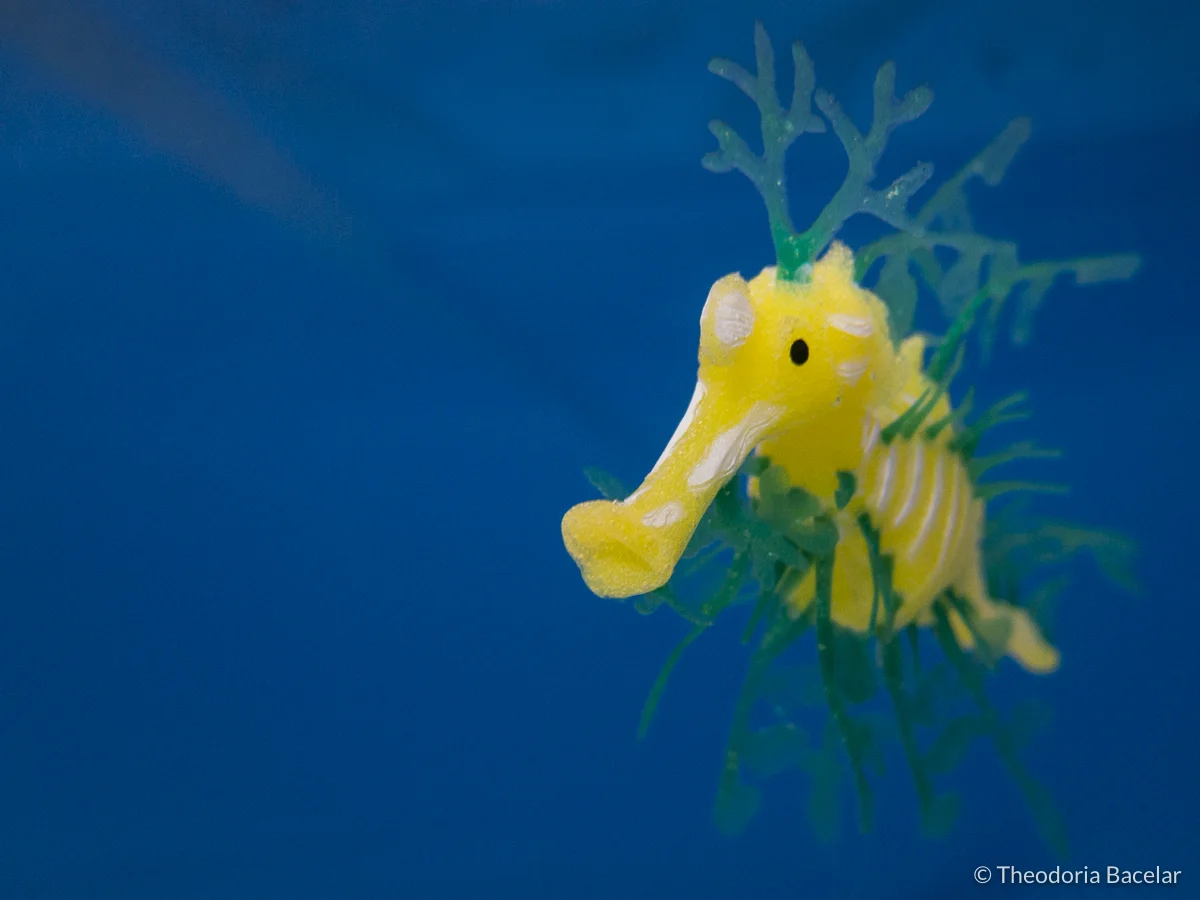 Curso de foto sub com a aluna Theodoria Bacelar em São Paulo. Theodoria fotografou esse Leafy Sea Dragon utilizando uma Canon G15 em caixa Canon com flash Intova.