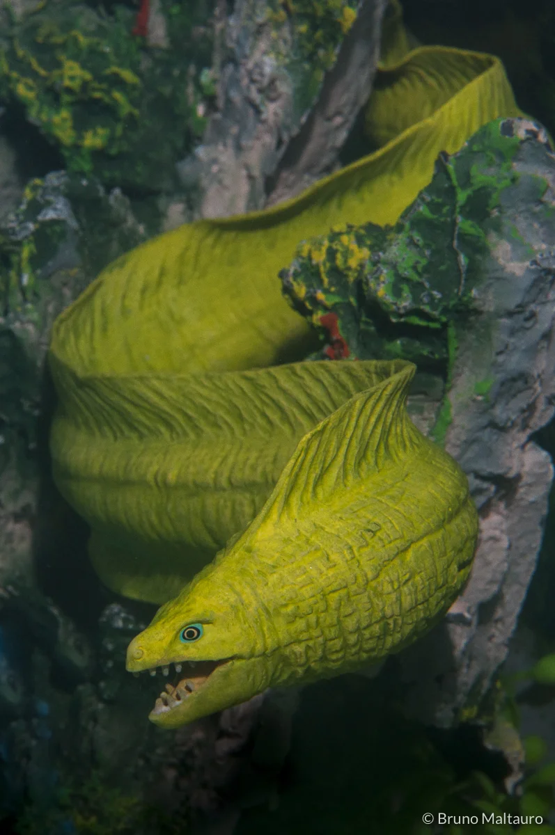 Bruno Maltauro fotografou durante o curso com uma Nikon D90 e um flash Sea&Sea YS-01. Essa foi uma das fotos mais legais que vi dessa moreia!